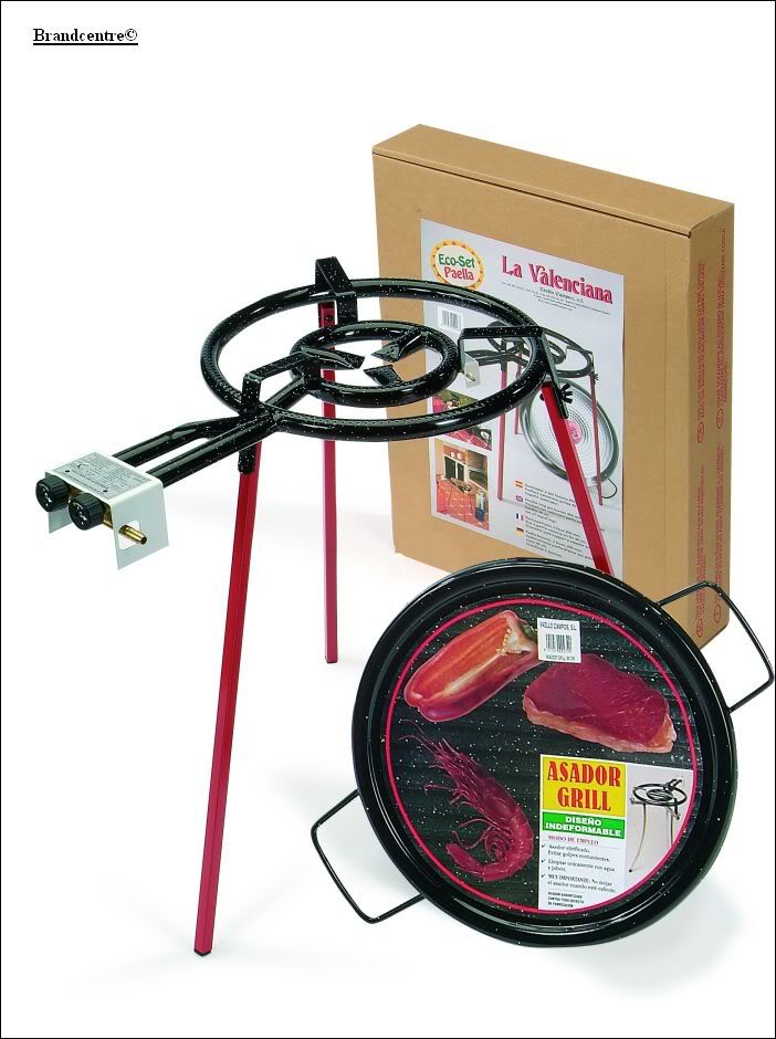 Fogon paellero de gas homologado para exteriores de Vaello Campos. Paella valenciana de acero pulido fabricada en acero pulido según tradición paellera. Paelleros de Valencia tradicionales fabrica Vaello Campos.